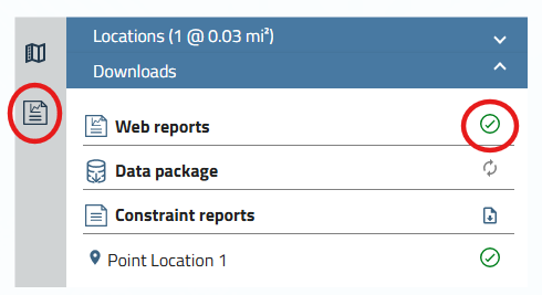 To view the status of your report and download your permitting and constraint reports, open the Downloads panel.