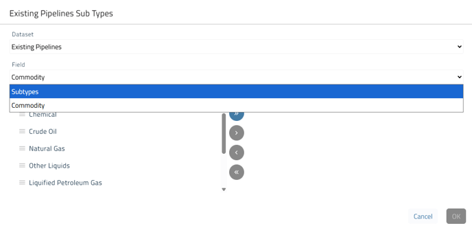 Existing Pipelines: Users can now conduct distance filters based on either Subtype (distribution pipeline, gathering pipeline, transmission pipeline, transmission pipeline storage header) or Commodity (chemical, crude oil, natural gas, other liquids, liquified petroleum gas, natural gas liquids, miscellaneous, refined petroleum products, water).