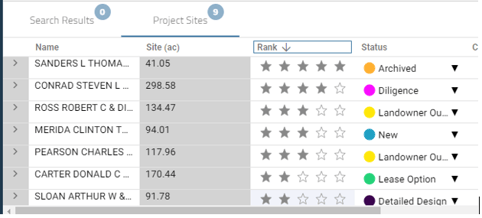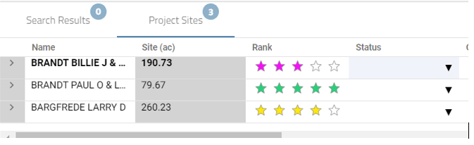 | 2. Name | This column lists the name of the site. For sites added either via the Search Results tab or the Add Sites tool, the default name of the site is the landowner’s name. By double-clicking within the cell, you can edit the site name. |